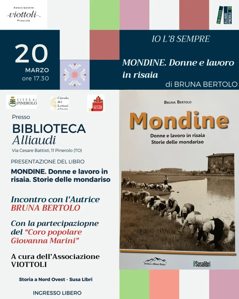 L’iniziativa, promossa da Associazione Viottoli Pinerolo nell’ambito di “Io l’8 sempre”, sarà arricchita dalla presenza del Coro popolare Giovanna Marini.