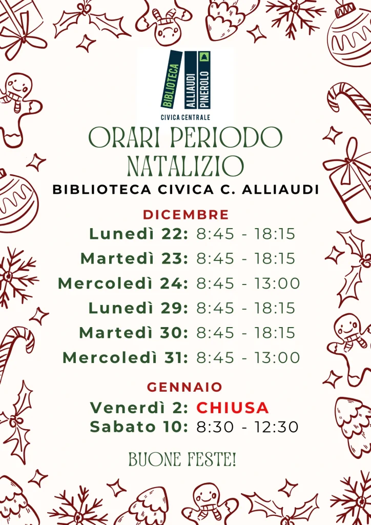 🎄✨Orari di Apertura durante il periodo natalizio della Biblioteca Civica “C. Alliaudi”✨🎄